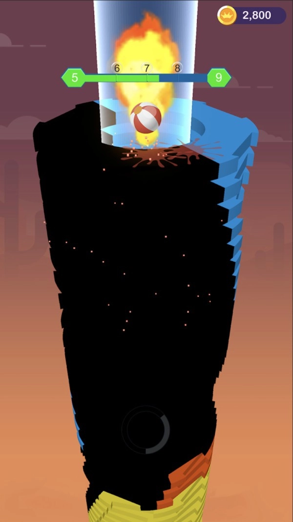球球进入运动状态后就会一直向前奔走,直到最终看到它即将撞击各种建筑物。