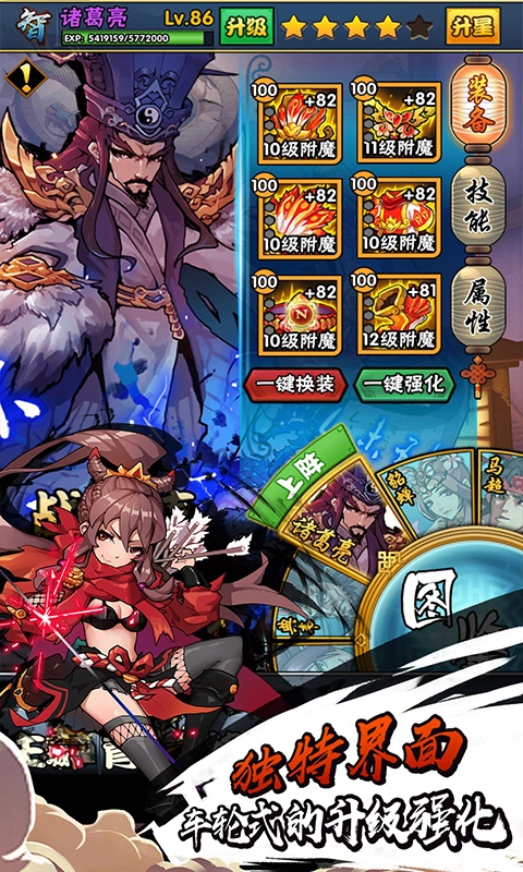都是三国经典英雄,各种策略随意组合,挂机战斗解放双手而且奖励还更多!离线了也可以找回。
