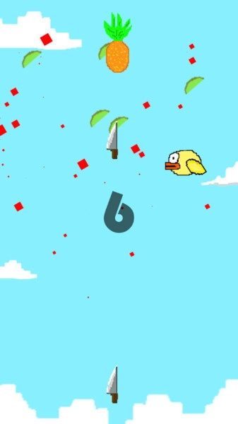 游戏画面相当魔性,刚进入游戏时还以为是款切水果游戏,实际上玩法就是通过切水果得分来躲避小黄鸟。