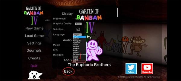 启动游戏,点击左侧Settings选项。进入设置菜单,找到language—English条目。选择中文选项,点击Back确认更改。语言自动切换,界面更新为中文。过程简单,无需重启。