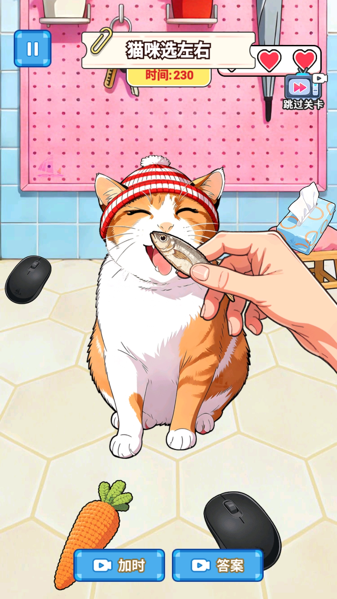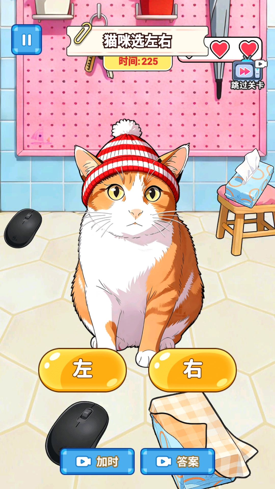 《大师疯狂挑战》最新版本是一款充满趣味的闯关游戏,玩家将扮演一只小猫,在主人的指引下辨认生活中的常见物品,并对物品做出向左或向右的选择。只要选对了,就能得到小鱼干作为奖励。不过,游戏里设置了不少陷阱,那些看起来正确的选项背后可能藏着小玄机,玩家得仔细判断才能顺利通过关卡,这也让游戏多了许多趣味和挑战性。