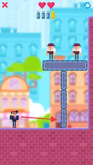 策略射击玩法:玩家需运用策略借助周围物品,把握时机射出唯一的一发子弹来完成任务挑战。