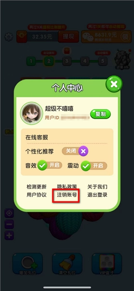 可以看到这里有一个注销账号,点击。