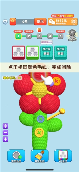 点击相同颜色毛线,完成消除。