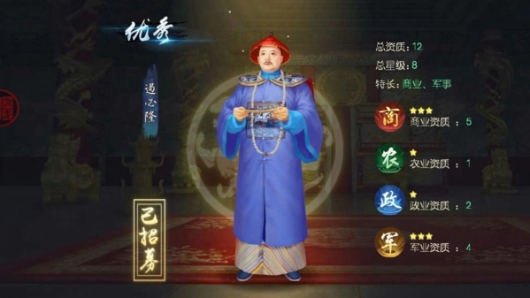 名臣培养:翰林院升级优先高资质大臣,喂资质果,突破成长点。