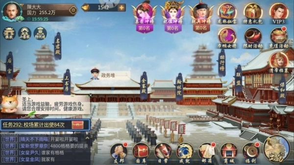 亲密榜:积攒步摇道具,活动时赏赐或宠幸妃子,微服私访偶遇加经验。