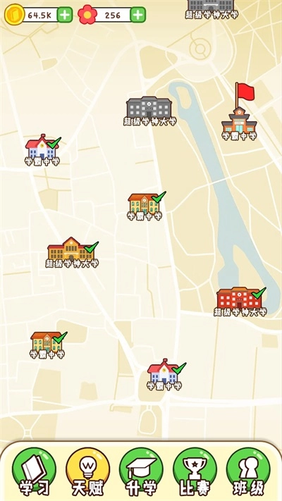 本游戏还设置了全服排行榜,玩家能够与其他玩家一同竞技、PK学生。排行榜类型包括秒产排行榜、升学排行榜、学习排行榜等。