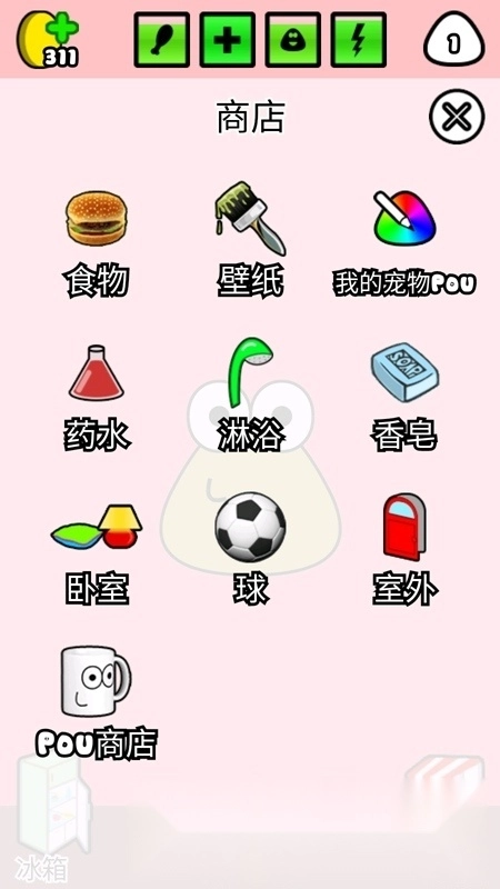 照顾Pou的日常,喂食清洁,陪伴玩耍,观察成长;