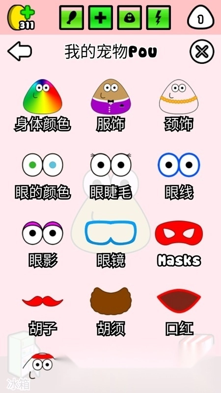 为Pou设计独特外观,更换服装、帽子与眼镜;