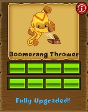 回旋镖猴:弧线攻击。路径一:多目标攻击(7目标)→圆环利刃(提速增伤)→弹射利刃(反弹)→月刃领主(反迷彩+环绕利刃)。路径二:音爆回旋镖(破白气球)→红热回旋镖(破铁质)→机械臂回旋镖(攻速加倍)→涡轮式回旋镖(爆发加速)。