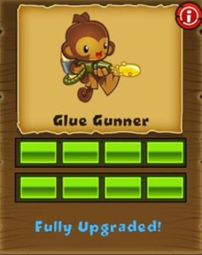 胶水猴子:无初伤,仅减速。路径一:胶水渗透(每层生效)→毒性胶水(持续伤)→气球降解(每秒破2层)→气球溶解(每秒破10层)。路径二:黏性胶水(延长时间)→胶水喷射器(粘6目标)→胶水加速(攻速加倍)→胶水突袭(全屏攻击)。
