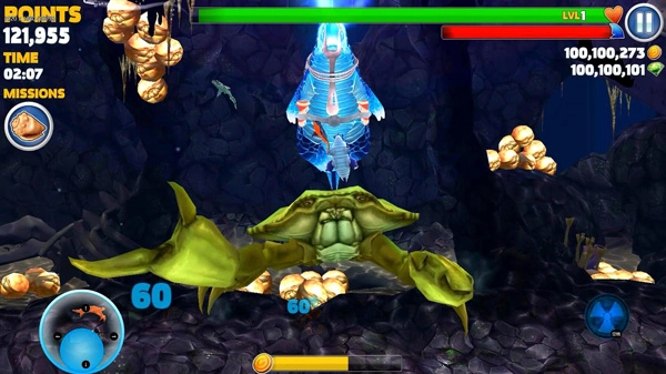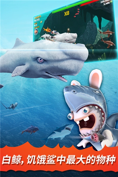 饥饿鲨进化(Hungry Shark)是一款以海洋为主题的冒险生存类手机游戏。在游戏里,玩家需要通过捕食其他海洋生物来提升自身等级,地图中会随机出现加速鞋、护盾等各类道具,收集这些道具能够增强玩家的生存能力,每次捕食完成后会进行金币奖励结算,玩家可使用这些金币来升级加速、潜水、咬合力等技能属性。以下为饥饿鲨进化游戏的版本合集。