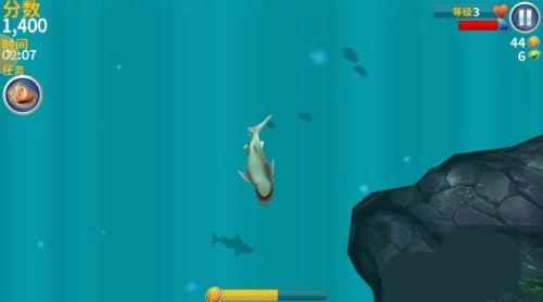 操控鲨鱼捕食鱼类、人类和鸟类,目标简单直接。解锁鲨鱼如锤头鲨或沧龙,体型越大捕食范围越广。装备特殊物品如喷气背包,改变游戏方式。完成日常任务获取金币和宝石奖励。支持触摸或倾斜控制,操作直观。离线游玩无需网络,方便随时进行。激活淘金热状态,短时间内无敌并高分。招募鲨鱼幼仔,增强整体战力。探索开放世界,发现野生动物。利用道具如防弹衣抵御水母毒素。多人对战需策略配合。