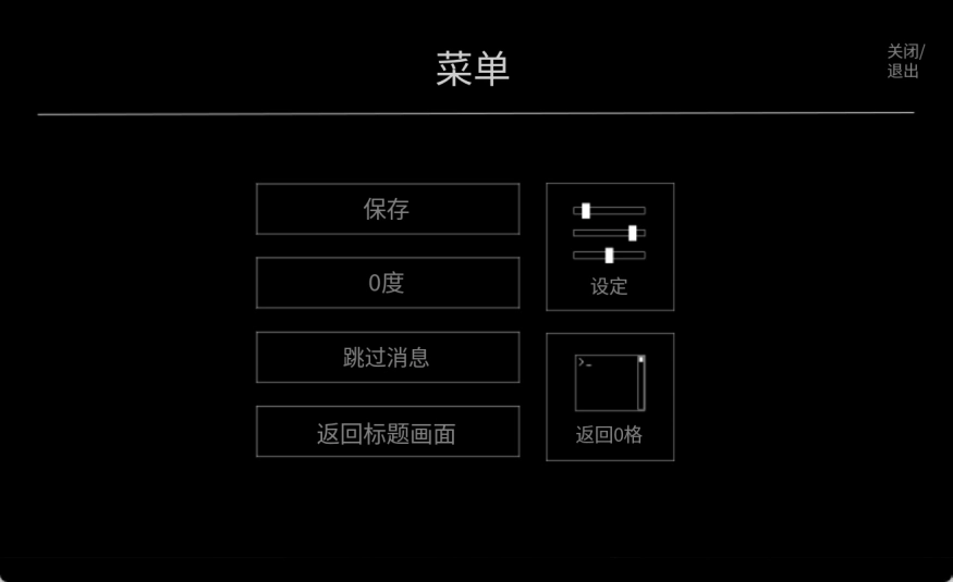 4、游戏内菜单支持保存、跳过消息、返回标题及快速回退(“返回0格”),关键抉择前务必保存。