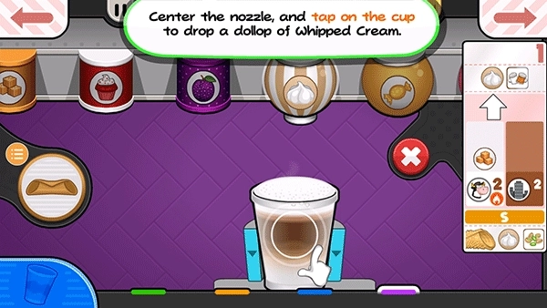 14、贾纳纳想要一个小的Papaccino,点击小杯子的S按钮。