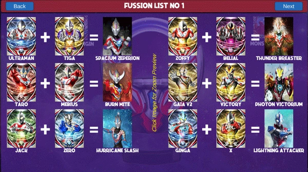 3、玩家可选择要融合变身的奥特曼卡片;
