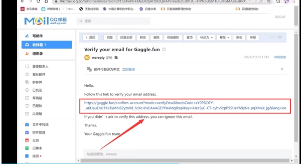 4、进入邮箱,打开链接进行核实,