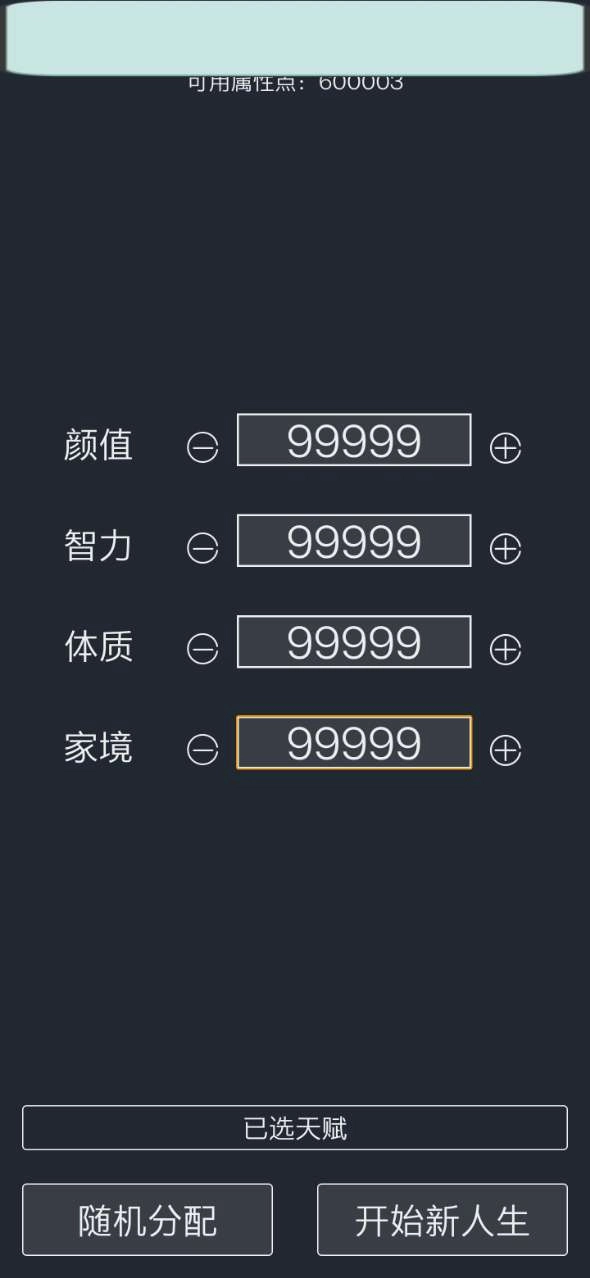 游戏中玩家需要选择合适的数值来开启你的人生哦。