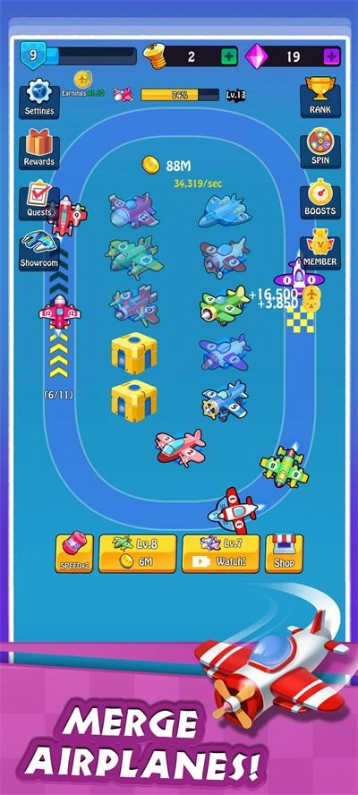 合并飞机是一款极具趣味性的位置合并游戏,玩家将运营最大的机场。在游戏中,玩家需要合并普通飞机,打造性能更优的高级飞机,借助飞机创造丰厚的商业收益,进而构建起强大的飞机王国。