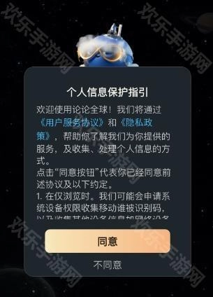 1.打开论论全球App,点击同意。