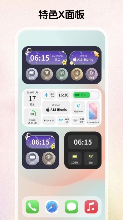 作为一款功能强大的桌面美化工具,组件岛拥有全面的服务能力,支持云端操作,让用户能够不受地点限制地进行桌面个性化设置,此外还提供了多种样式的手表小部件,用户可以依据个人偏好挑选专属的手表组件,为桌面增添别样的风采。