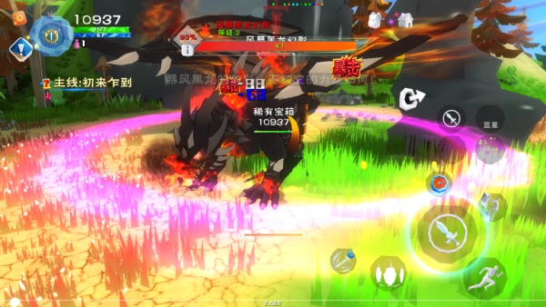 3、进入新的世界,和强大的怪物展开对战,点击武器展开对战,动作流畅连贯。