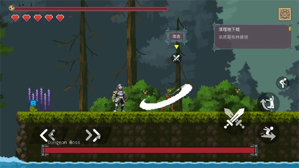 1、玩家进入游戏界面后,可借助屏幕左下角的操控按钮来指挥角色行动,能持续向前推进。