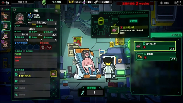 3、将受伤的士兵撤回基地后,可以进行手术治疗以恢复其战斗力。
