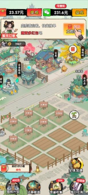 6、完成订单、升级建筑、触发随机事件,均可获得红包奖励