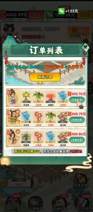 3、订单任务模块,通过处理用户的订单需求,能够获得金币、道具奖励,还能解锁新的功能或内容。
