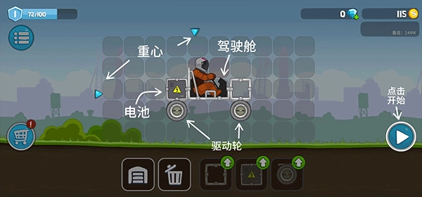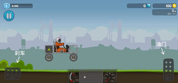 3、接下来我们就能直接出发了,左方控制后退,右方控制前进,要是车头抬起来就踩刹车,车尾抬起来就踩油门,操作就是这么容易。