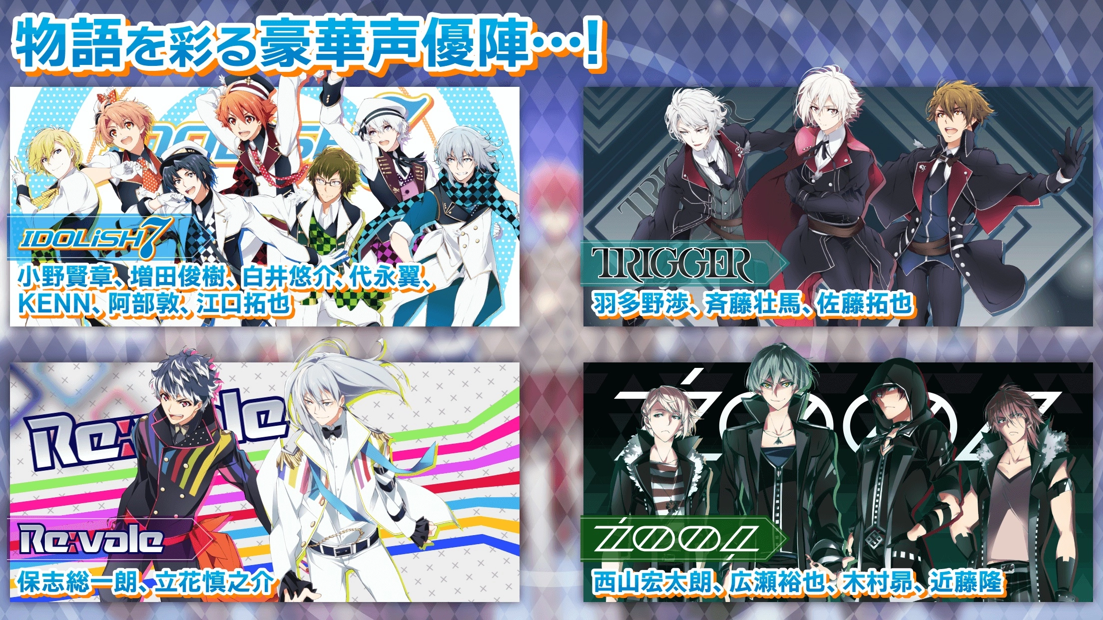 IDOLiSH7是万代南梦宫娱乐推出的女性向音乐节奏游戏,玩家将以经纪人的身份,为拯救濒临破产的公司,全力培养IDOLiSH7这个七人偶像团体——通过参与音游打歌、解锁剧情故事、养成角色卡牌等方式,助力他们一步步成长。游戏不仅采用全程语音的主线剧情,还融合了趣味十足的音乐节奏玩法;更有知名漫画家种村有菜负责角色设计,知名脚本家都志见文太把控剧本走向,再加上豪华的声优阵容、精致美型的角色立绘与引人入胜的故事剧情,无论是喜爱偶像题材游戏,还是对音乐节奏玩法感兴趣的玩家,都值得尝试体验一番!