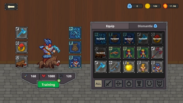 6、消耗金币可抽取武器装备,并为英雄们进行自由搭配。
