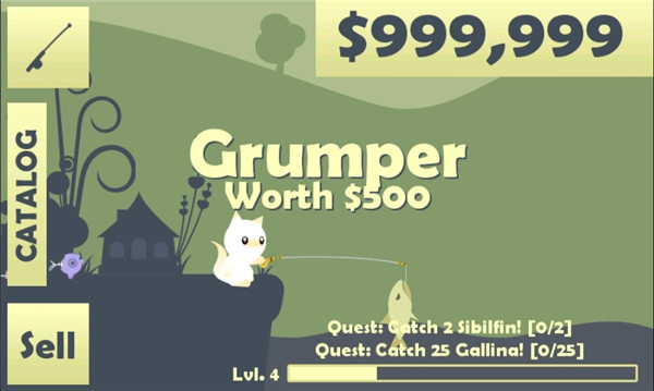只要成功钓到鱼,点击左下角的【sell】按钮,就能获取金币。
