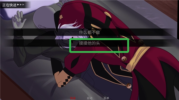 10、请点击【轻轻抚摸他的头部】这个选项。