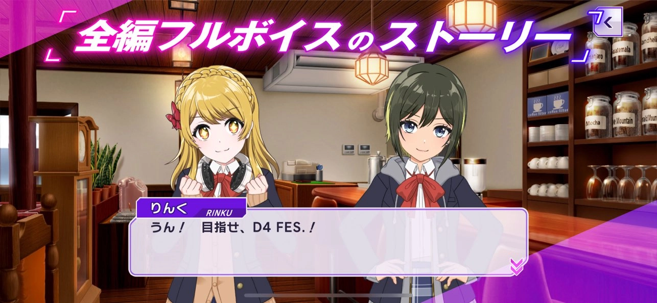 《D4DJ》是一个由二十四位女性DJ构成的个性鲜明的女子DJ团体组合。不同的团队有着独树一帜、风格酷炫的DJ音乐特色,DJ爱好者们能够借助知名配音演员全程语音的演绎,以及Live2D鲜活灵动的呈现,和每一位女DJ展开最具真实感的互动与情感联结。