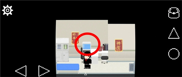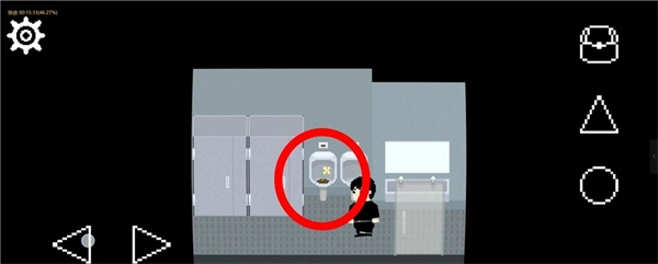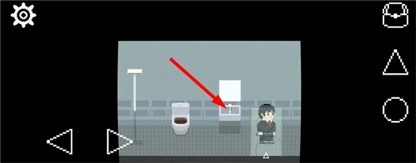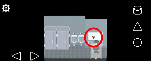 9、在白天的厕所里,按下三角键坐上马桶后,再按圆形键冲水,会发现有东西卡在下水道里。