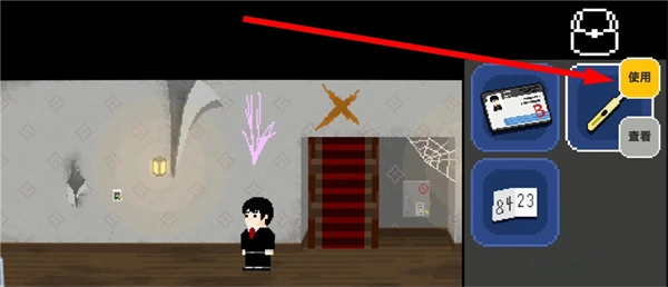 15、当你站在带有标识的位置时,取出背包里的美工刀进行操作,就能发现被墙纸掩盖住的保险箱。