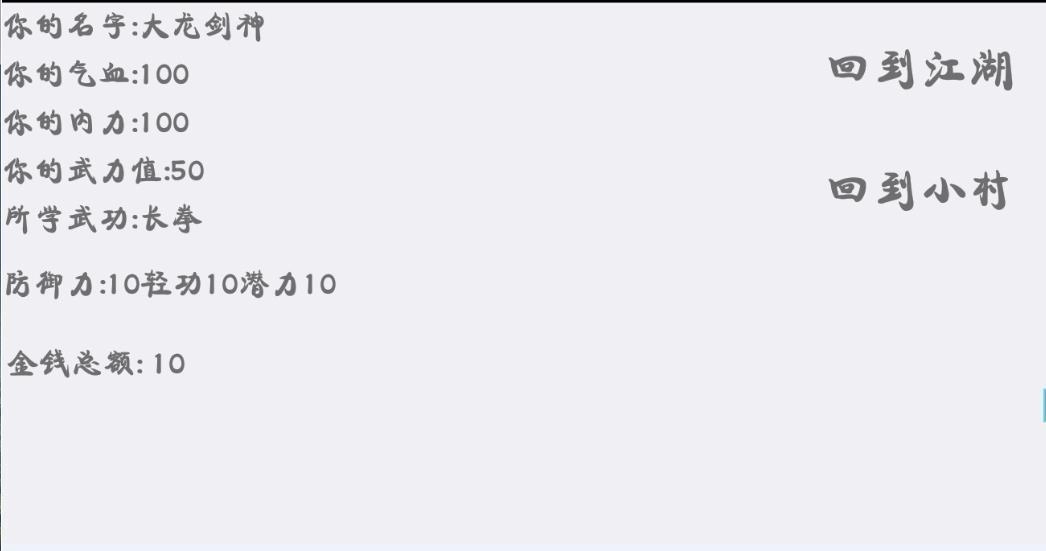 《江湖武林》是一款以武侠为主题的文字冒险游戏。在游戏里,玩家将化身一位大侠,在江湖世界中展开自由的冒险之旅。游戏内设有多条故事线等待玩家去探索,大家可以依据自己的游戏风格来践行侠义之举。游戏的操作方式十分简便,只要击败敌人就会掉落秘籍,当集齐所有秘籍后,就能练就一身绝世武功,赶紧来体验吧。