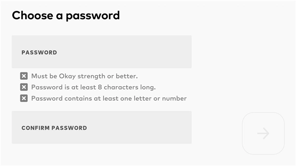 请输入账号密码,且上下两行输入的内容必须保持一致;密码设置要求为:长度至少8位字符,并且至少包含一个英文字母。
