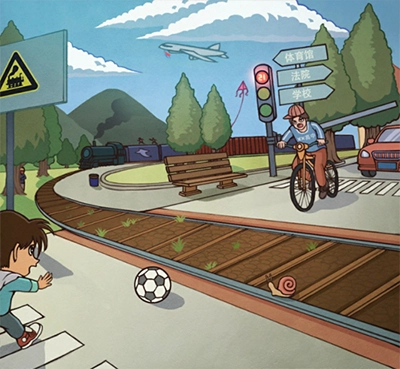 点击那个正在捡足球的小朋友,就能明白他为什么会闯红灯了。