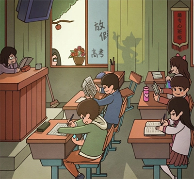 这其实就是班级的氛围啊——大家都在为高考努力学习呢!而我们的任务,就是帮他们学到更多知识,让更多学生能考上理想的大学。这正是咱们玩这个游戏的核心意义,所以一起加油吧!