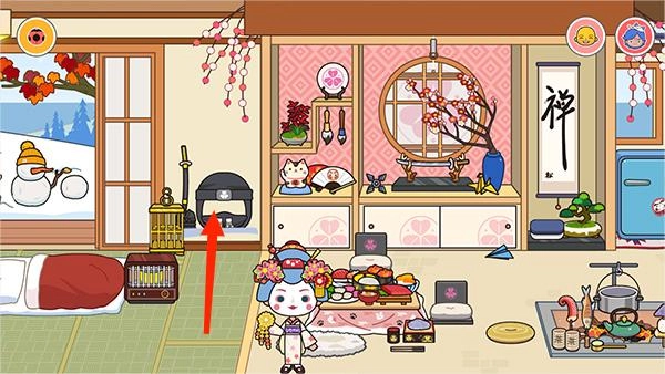 在招财猫旁边的柜子旁,悄悄揭开墙纸,会显现出一个隐秘空间,顺利解锁超酷的忍者主题装扮套装。