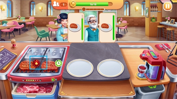 2、升级店铺:用赚取的金币升级店铺的设施、员工技能、食材品质,提升店铺的效率和收益。
