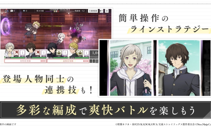 人气角色齐聚,不管是中岛敦、太宰治,亦或是芥川龙之介、中原中也,你都有机会将他们召集到麾下,成为你队伍里的一份子。
