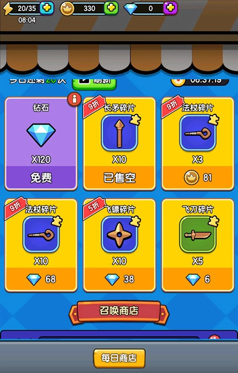 玩家可以在商店内购买武器碎片来进行升级提升。