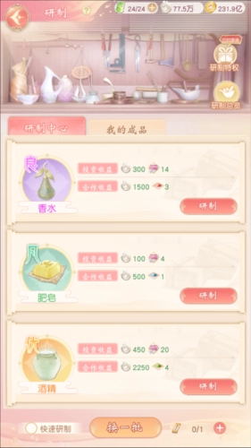不同项目的研制能带来不一样的额外奖励,项目品质越高,对应的奖励也就越丰厚。研制过程中需要消耗铜钱,并且要分阶段逐步完成产品的研制。