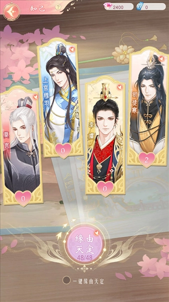 “缘由天定”是所有知己相聚的场所,玩家在剧情里结识知己后,能在“缘由天定”中随机与他们相遇;掌柜也会在此随机邂逅一位知己,触发专属剧情,剧情结束后可获得心悦值。