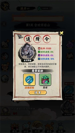 进入游戏后,点击屏幕即可攻击妖兽,成功击败妖兽后能获取灵石。
