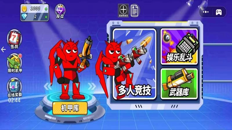 玩家借助虚拟摇杆来操控机甲英雄的移动方向,点击屏幕上的攻击按钮后,机甲英雄就会释放对应的攻击招式。
